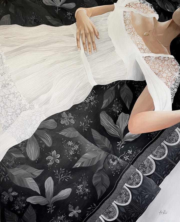 One afternoon in the year 2022, while painting one of my first large scale women pieces, I said to myself, “Hmm. What if I make her wear lace?”